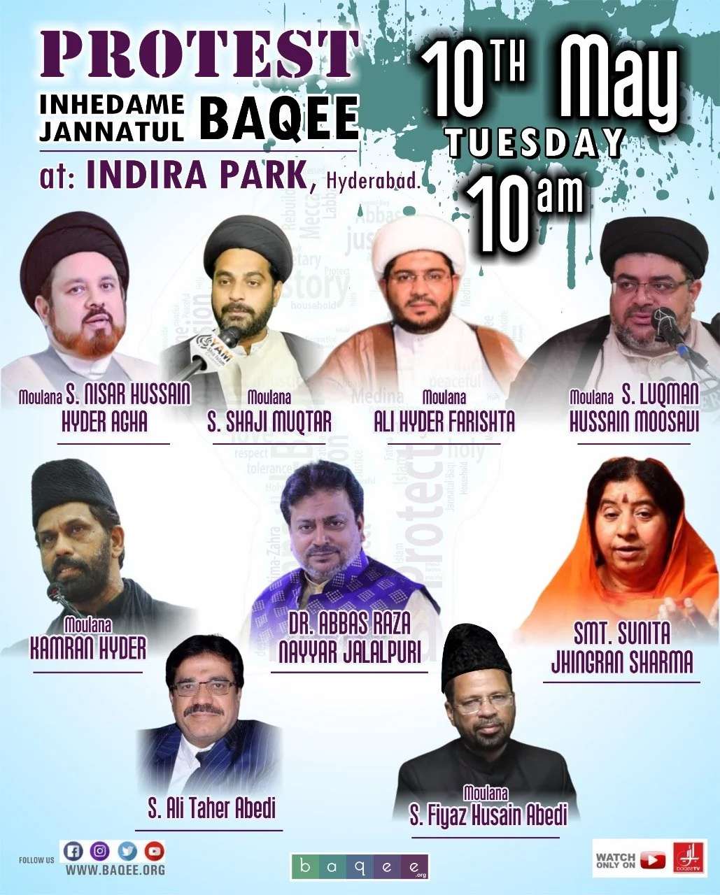 Majlis commemorating the destruction of Jannatul Baqee will be held at Alawa-e-Sartauq in Hyderabad on May 8th at 8:00pm