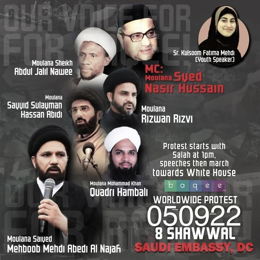After being affected by COVID-19 for two years, Al Baqee Organization will be hosting an in-person protest in Washington DC in front of the Saudi Embassy on May 9th at 1:00 pm